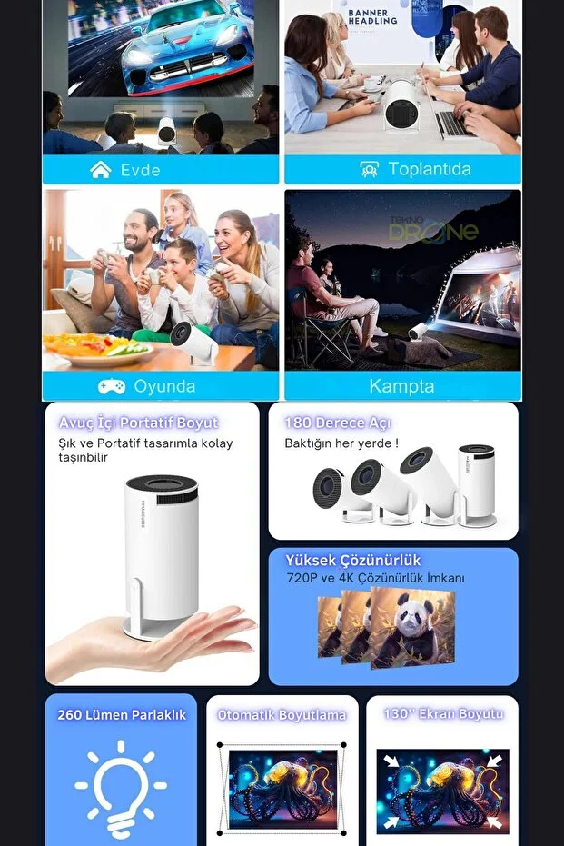 Taşınabilir Android Projeksiyon | 1080p Çözünürlük